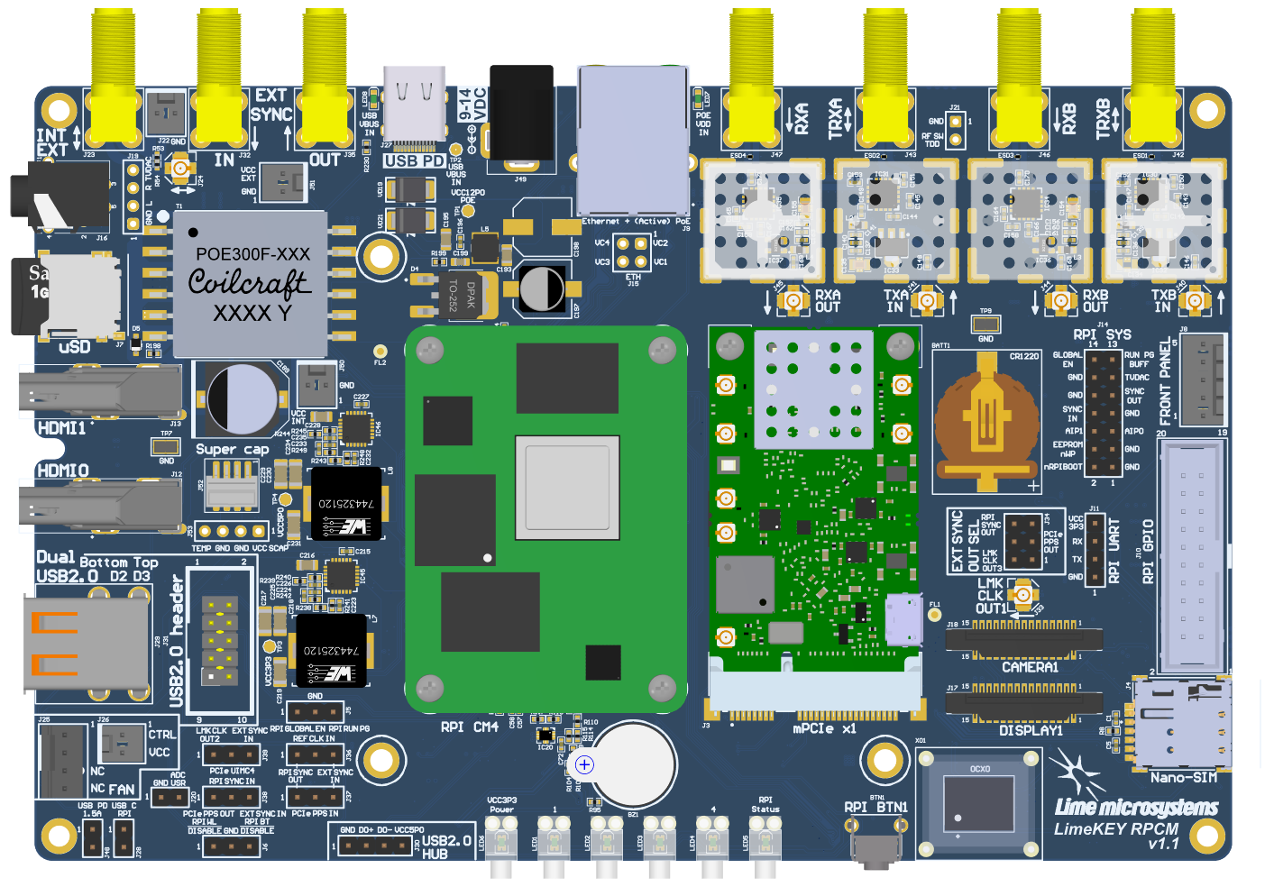 Figure 1: LimePSB RPCM v1.1 board top view