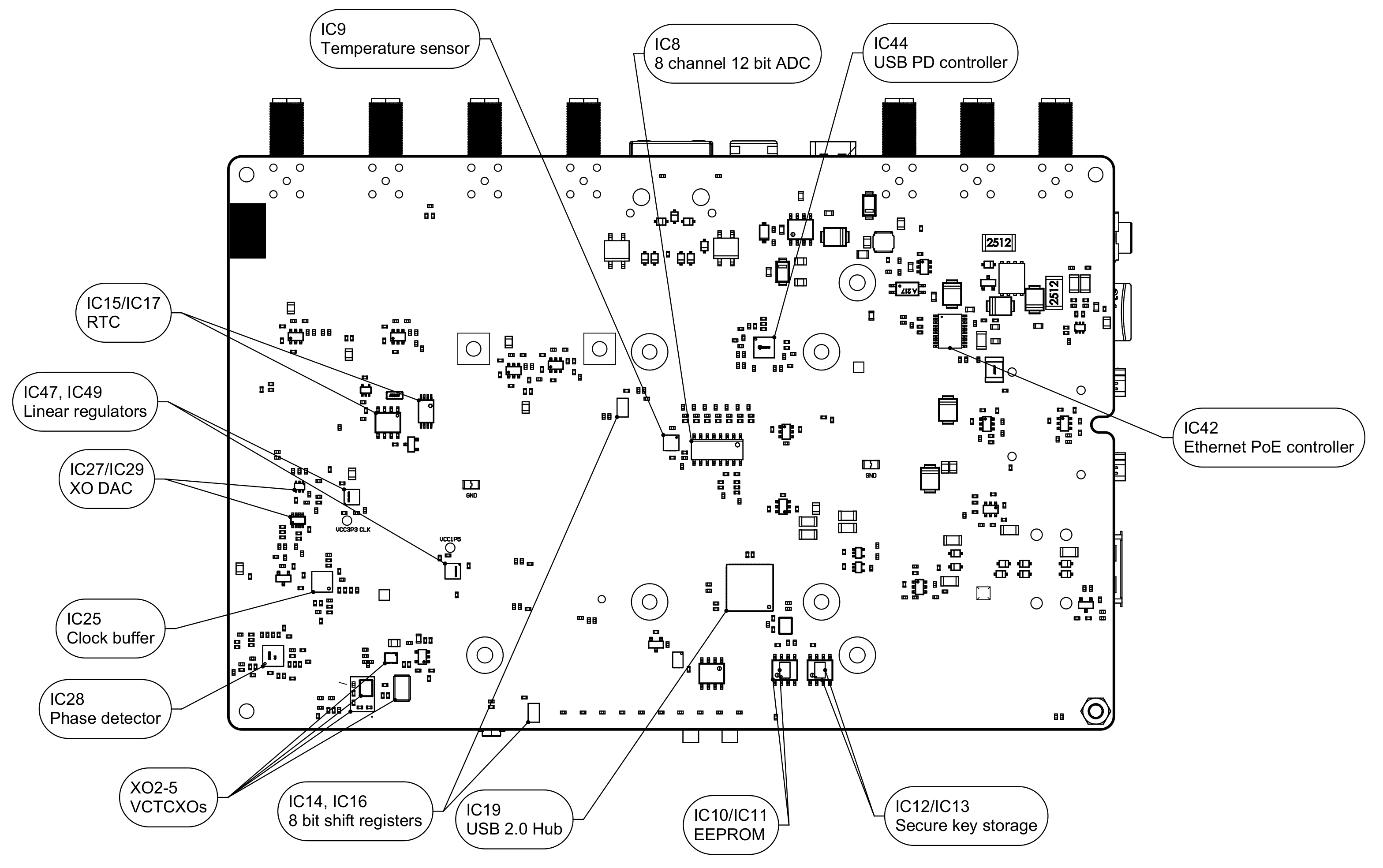 Figure 5: LimePSB RPCM v1.1 board bottom connectors and main components